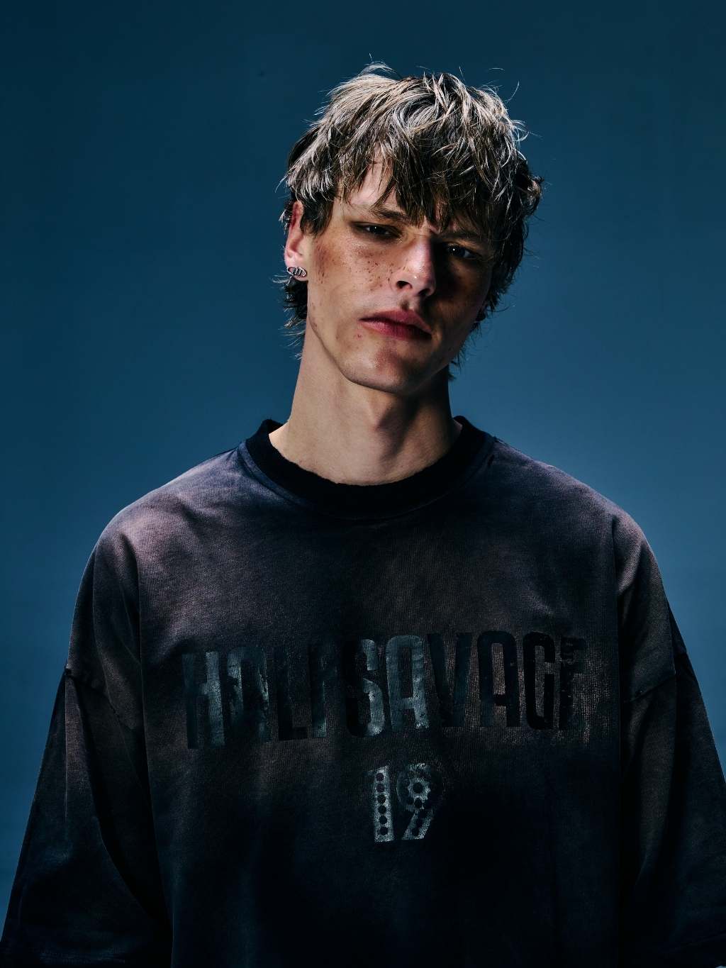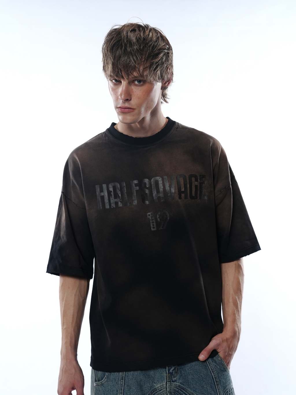 An oversized tee made with heavyweight Japanese cotton, garment-dyed and distressed for a vintage fade.